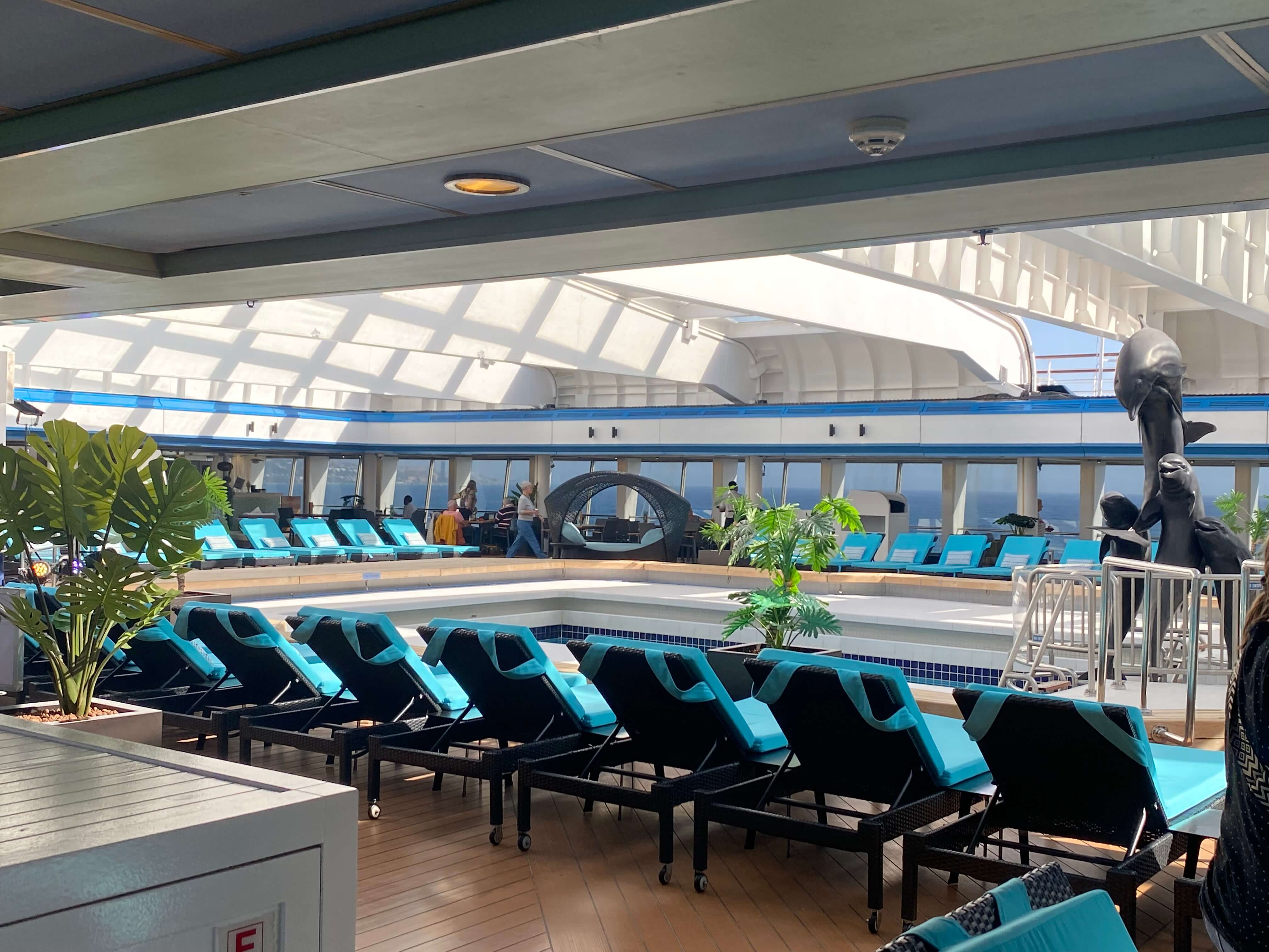 Während unserer Reise konnten wir uns in den fünf verschiedenen Restaurants und in den sieben Bars und Cafés verwöhnen lassen. Am Abend gibt es verschiedene Unterhaltungsmöglichkeiten wie Live Musik in den Bars, verschiedene Shows im Hollywood, das Theater des Schiffes, oder am späteren Abend auch in der Diskothek. Es gibt aber auch ruhigere Orte wie den Leseraum oder die Bibliothek, wo man sich gut mit einem Buch zurückziehen kann. Es ist ein wirklich gemütliches Schiff zum Wohlfühlen!